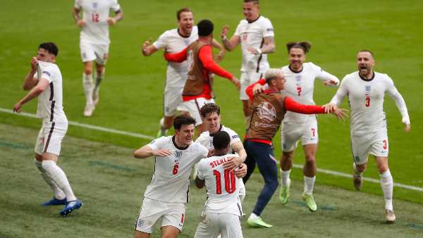 75ാം മിനിറ്റില് വെംബ്ലി സ്റ്റേഡിയത്തെ ആവേശത്തിലാറാടിച്ച് ഇംഗ്ലണ്ട് അക്കൗണ്ട് തുറന്നു. ഒരിക്കല്ക്കൂടി സ്റ്റെര്ലിങാണ് ഇംഗ്ലണ്ടിന്റെ ഹീറോയത്. സ്റ്റെര്ലിങ് തന്നെയായിരുന്നു ഗോളിനു ചരടു വലിച്ചത്. ബോക്സിനരികില് നിന്നും സ്റ്റെര്ലിങ് പന്ത് കെയ്നിനു മറിച്ചുനല്കി. കെയ്ന് ബോള് വലതു വിങിലൂടെ കച്ച് ചെയ്തു കയറിയ ഗ്രെലിഷിന് പാസ് ചെയ്തു. പിന്നാലെ ഗ്രെലിഷ് ലൂക്ക് ഷോയ്ക്ക് പാസ് ചെയ്തു. ഇടതു വിങില് നിന്നും ഷോ അളന്നുമുറിച്ച് നല്തിയ ക്രോസ് സ്റ്റെര്ലിങ് ക്ലോസ്റേഞ്ച് ഷോട്ടിലൂടെ വലയിലേക്കു പ്ലേസ് ചെയ്യുകയായിരുന്നു.