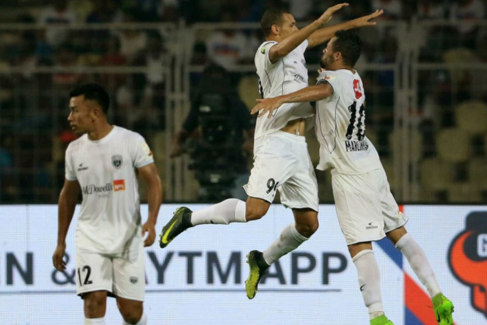 ഗോവയിലെ ഫറ്റോര്ഡ സ്റ്റേഡിയത്തില് ഇരുടീമും ഇഞ്ചോടിഞ്ച് പോരാട്ടം പുറത്തെടുത്തതോടെ മല്സരം ആവേശകരമായി മാറി. 42ാം മിനിറ്റില് മന്ദര് റാവു ദേശായിയിലൂടെ ഗോവ അക്കൗണ്ട് തുറന്നെങ്കിലും ലീഡിന് മൂന്നു മിനിറ്റിന്റെ ആയുസ്സ് മാത്രമേ ഉണ്ടായുള്ളൂ. ഒന്നാംപകുതി തീരാന് സെക്കന്റുകള് ബാക്കിനില്ക്കെ മാര്സീഞ്ഞോ നോര്ത്ത് ഈസ്റ്റിനെ ഒപ്പമെത്തിച്ചു.