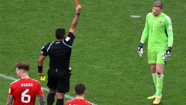 87ാം മിനുട്ടില് വെയ്ല് ഹീറോയായ ഗോളി ഹെന്നെസിക്ക് റെഡ് കാര്ഡ് ലഭിച്ചു. അപകടകരമായ ടാക്കിള് ചെയ്തതിനെത്തുടര്ന്ന് ആദ്യം മഞ്ഞക്കാര്ഡാണ് റഫറി മപിയോ എസ്കോബാര് നല്കിയതെങ്കിലും വാര് പരിശോധനക്ക് ശേഷം മഞ്ഞക്കാര്ഡ് പിന്വലിച്ച് റെഡ് കാര്ഡ് നല്കുകയായിരുന്നു. ഇതോടെ 10 പേരായി വെയ്ല് ഒതുങ്ങിയെങ്കിലും ഫിനിഷിങ്ങിലെ പോരായ്മകൊണ്ട് ഇറാന് നിര വിയര്ത്തു.
