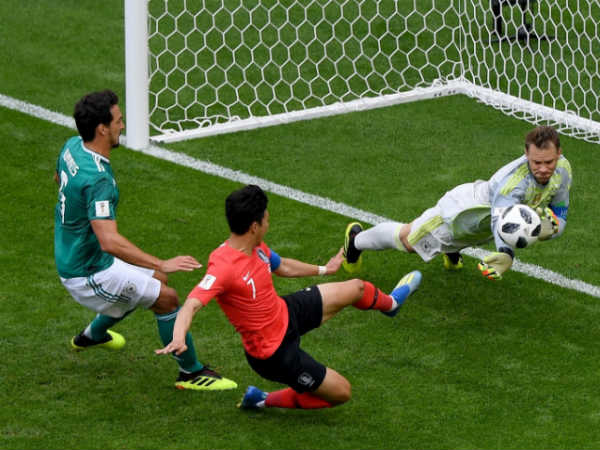 19ാം മിനിറ്റില് ജര്മനിക്കെതിരേ കൊറിയക്ക് ലീഡ് നേടാന് സുവര്ണാവസരം. ബോക്സിന് തൊട്ടരികില് വച്ച് ജുങിന്റെ തകര്പ്പന് ഫ്രീകിക്ക് പിടിയിലൊതുക്കാന് ഗോളി നുയര്ക്കായില്ല. നുയറുടെ കൈകളില് നിന്നും വഴുതി മാറിയ പന്തിനായി കൊറിയ പാഞ്ഞടുത്തെങ്കിലും ജര്മനി ഒരു വിധം അപകടമൊഴിവാക്കി
