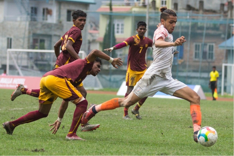 തുടര്ച്ചയായ മുന്നേറ്റങ്ങള്ക്കിടെ ആദ്യ പകുതിയില് ഇന്ത്യയ്ക്ക് ഒന്നിലേറെ അവരങ്ങള് ലഭിച്ചെങ്കിലും ഗോളാക്കിമാറ്റാനായില്ല. 65-ാം മിനിറ്റിലാണ് ഇന്ത്യ ആദ്യ ഗോള് നേടുന്നത്. ശ്രീലങ്കയുടെ പ്രതിരോധ നിരയുടെ മോശം ക്ലിയറിന്സില്നിന്നും പന്ത് പിടിച്ചെടുത്ത ഗുര്കിരാത് വലകുലുക്കി. പിന്നീട് ഇഞ്ചുറി ടൈമിലാണ് ഇന്ത്യയുടെ മറ്റ് രണ്ട് ഗോളുകള്. ഗുര്കിരാതിനെ കൂടാതെ ഗിവ്സണ് സിങ്ങിന് പകരക്കാരനായി ഇറങ്ങിയ അമന് ഛേത്രയാണ് മൂന്നാം ഗോള് നേടിയത്.