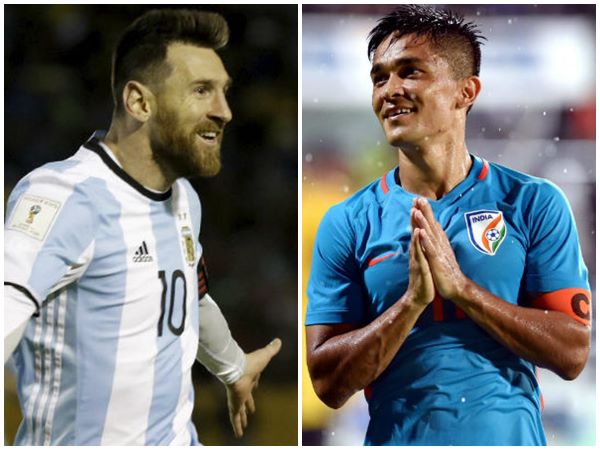 അന്താരാഷ്ട്ര ഫുട്ബോളില് ദേശീയ ടീമിനായി 64 ഗോളുകള് വീതം നേടിയാണ് മെസ്സിയും ഛേത്രിയും ഒപ്പത്തിനൊപ്പം നില്ക്കുന്നത്. ഇത്രയും ഗോളുകള് നേടാന് മെസ്സിക്കു വേണ്ടിവന്നത് 124 മല്സരങ്ങള് ആണെങ്കില് വവെറും 102 മല്സരങ്ങളില് നിന്നാണ് 33 കാരനായ ഛേത്രി 64 ഗോളുകള് നേടിയത്.