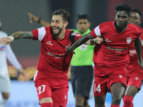 47ാം മിനിറ്റില് റൗളിന് ബോര്ജസിന്റെ ഗോളില് നോര്ത്ത് ഈസ്റ്റാണ് ആദ്യം മുന്നിലെത്തിയത്. പൂനെ ഗോളിക്കു വന്ന പിഴവില് നിന്നായിരുന്നു ഗോള്. ബോര്ജസിന്റെ ഗോള്ശ്രമം തടയാന് ശ്രമിച്ച ഗോളി കമല്ജിത്തിന് പന്ത് പിടിയിലൊതുക്കാനായില്ല. തുടര്ന്ന് ബോര്ജസ് ഒഴിഞ്ഞ വലയിലേക്ക് പന്ത് തട്ടിയിടുകയായിരുന്നു. ഈ ഗോളില് നോര്ത്ത് ഈസ്റ്റ് ജയവും പ്ലേഓഫ് ടിക്കറ്റും ഉറപ്പിക്കുമെന്ന് കരുതിയെങ്കിലും 69ാം മിനിറ്റില് ആദില് ഖാന്റെ ഗോളില് പൂനെ ഒപ്പമെത്തി. ഡീഗോ കാര്ലോസിന്റെ ക്രോസ് തകര്പ്പനൊരു വോളിയിലൂടെയാണ് ആദില് വലയിലേക്കു പായിച്ചത്. 89ാം മിനിറ്റില് ല്യുഡോ റൊമാന രണ്ടാം മഞ്ഞക്കാര്ഡും കണ്ടു പുറത്തായതോടെ വിജയഗോള് നേടുകയെന്ന നോര്ത്ത് ഈസ്റ്റിന്റെ പ്രതീക്ഷകളും അസ്തമിച്ചു.