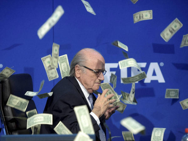സൂറിച്ച്: അഴിമതി ആരോപണ വിധേയനായ ഫിഫ മുന് പ്രസിഡന്റ് സെപ് ബ്ലാറ്ററുടെ മുഖത്തേക്ക് ഡോളര് നോട്ടു കെട്ടുകള് വാരിയെറഞ്ഞു. ഫിഫയുടെ യോഗ തീരുമാനങ്ങള് വിശദീകരിക്കാന് വിളിച്ച വാര്ത്താസമ്മേളനത്തിലാണ് സംഭവം. പണത്തോടുള്ള ആര്ത്തിയാണ് അഴിമതി നടത്താന് കാരണമാകുന്നതെന്ന അര്ഥത്തിലായിരുന്നു യുവാവ് ഡോളറുകള് വലിച്ചെറിഞ്ഞത്.