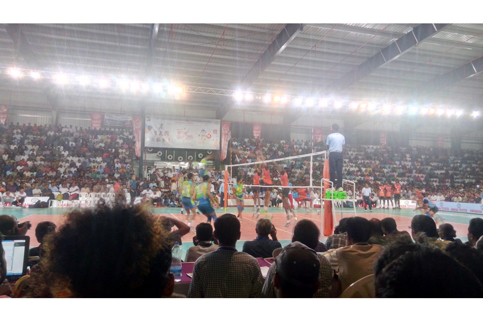 സര്വിസ് തുടങ്ങിയത് തമിഴ്നാട് ആയിരുന്നെങ്കിലും കേരളത്തിന്റെ ഫിനിഷോടെയാണ് സെമിയുടോ സ്കോര്ബോര്ഡ് തുറന്നത്. തുടര്ന്ന് ഇടയ്ക്കൊരു സമനില ആയതൊഴിച്ചാല് ആദ്യ സെറ്റില് ചെറിയ മാര്ജിനില് കേരളം ലീഡ് നിലനിര്ത്തുകയും 25-11ല് അത് അവസാനിക്കുകയും ചെയ്തു. എന്നാല്, രണ്ടാം സെറ്റില് തമിഴനാട് കൂടുതല് ആക്രമിച്ചു കളിക്കുന്നതാണ് കണ്ടത്. പ്രവീണും അഭിലാഷും ആക്രമണത്തിന് മൂര്ഛ കൂട്ടിയപ്പോള് ഷെല്ട്ടണും ആനന്ദ് രാജും മികച്ച ബ്ലോക്കുകള് തീര്ത്തു. കേരളത്തിന്റെ ഭാഗത്തുനിന്ന് ജെറോമിന്റെ സ്മാഷുകള് പലപ്പോഴും തമിഴ്നാട് പിടിച്ചിട്ടു. ജെറോമും വിബിനും സെര്വുകള് പലതും പുറമേക്ക് പായിച്ചതോടെ പല തവണ തമിഴ്നാട് ലീഡ് നേടി. എന്നാല്, വിജയം നേടാന് മാത്രം ടീമിനായില്ല. ഒടുവില് 30-28ന് കേരളം രണ്ടാം സെറ്റും സ്വന്തമാക്കുകയായിരുന്നു.