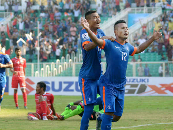ഒന്നാം പകുതിയുടെ 25-ാം മിനിട്ടില് സുനില് ഛേത്രിയാണ് ഇന്ത്യയ്ക്ക് വേണ്ടി ആദ്യ ഗോള് നേടിയത്. 34-ാം മിനിട്ടിലും 66-ാം മിനിട്ടിലും ജെജെ ഓരോ ഗോളുകള് വീതം നേടി. രണ്ട് ഗോളുകളാണ് മാലെദ്വീപിന് മടക്കാനായുള്ളു.