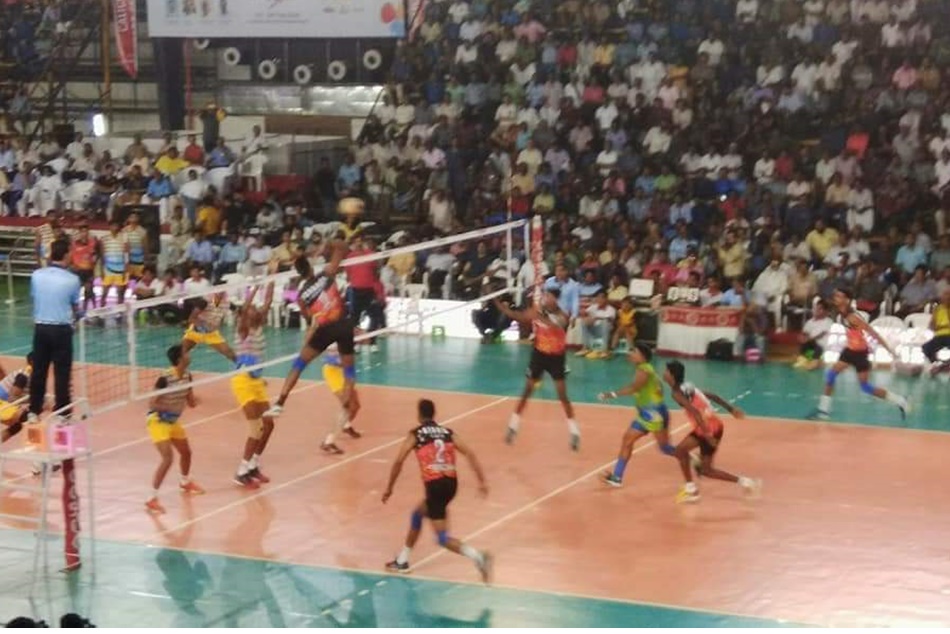 ആദ്യത്തെ രണ്ടു സെറ്റുകളില് കനത്ത മത്സരം കാഴ്ചവെച്ചശേഷമാണ് ആന്ധ്രാ ടീം കേരളത്തിനു മുന്നില് കീഴടങ്ങിയത്. ആദ്യ സെറ്റില് 27-25 എന്ന സ്കോറിനാണ് ആന്ധ്ര അടിയറവു പറഞ്ഞത്. രണ്ടാമത്തെ സെറ്റില് അവര് കേരളത്തെ ഒന്നുകൂടി വിറപ്പിച്ചു. 10-10 എന്ന സമനില പിടിച്ച ശേഷം ഒരു ഘട്ടത്തില് 20-17 എന്ന ലീഡിലുമെത്തി. എന്നാല്, സെറ്റ് തിരിച്ചുപിടിച്ച കേരളം 25-23ന് ഫിനിഷ് ചെയ്യുകയായിരുന്നു.