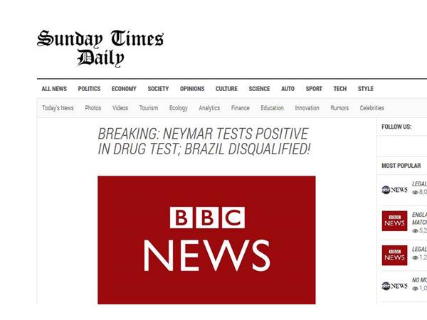 ബ്രസീല് സൂപ്പര്താരം നെയ്മര് മരുന്നടിയില് പോസിറ്റീവ് എന്നാണ് സണ്ഡേ ടൈംസ് ഡെയ്ലിയുടെ ചോവ്വാഴ്ചത്തെ ബ്രേക്കിംഗ്. സ്ക്രീന് ഷോട്ട് നോക്കൂ.