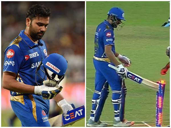 രണ്ടാമിന്നിങ്സില് മുംബൈ കൂറ്റന് വിജയലക്ഷ്യം പിന്തുടരവെയാണ് 12 റണ്സെടുത്തു നില്ക്കെ ഹാരി ഗര്നെയുടെ ബൗളിങില് രോഹിത്തിനെതിരേ അംപയര് എല്ബിഡബ്ല്യു വിധിച്ചത്. കളിയുടെ നാലാം ഓവറിലായിരുന്നു ഇത്. അംപയറുടെ തീരുമാനത്തിനെതിരേ അദ്ദേഹം റിവ്യു പോവുകയായിരുന്നു. എന്നാല് മൂന്നാം അംപയറും അത് ഔട്ട് തന്നെയാണെന്ന് വിധിച്ചു. തുടര്ന്നു അസംതൃപ്തനായി കാണപ്പട്ട രോഹിത് അംപയറുമായി തര്ക്കിച്ച ശേഷം ക്രീസ് വിടവെ സ്റ്റംപില് ബാറ്റ് കൊണ്ട് കുത്തുകയായിരുന്നു.