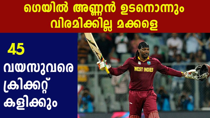 ആരോഗ്യപരമായി നന്നായി പോകുന്നു. ഓരോ ദിവസവും ചെറുപ്പമാകുന്നതായാണ് തോന്നുന്നത്. അതിനാല് 45 വയസ് കളി മതിയാക്കാന് ഉചിതമായ പ്രായമാണന്ന് കരുതുന്നു. ഈ വര്ഷം നടക്കുന്ന ട്വന്റി20 ലോകകപ്പില് വെസ്റ്റ് ഇന്ഡീസിനുവേണ്ടി കളിക്കാന് സാധിക്കുമെന്നാണ് പ്രതീക്ഷ. എന്താകുമെന്ന് കാത്തിരുന്ന് കാണാം. ക്രിക്കറ്റില് നിന്ന് വിരമിച്ചാല് പരിശീലകനായി മടങ്ങിയെത്തില്ല. ആ റോളിനോട് താത്പര്യമില്ല. വിരമിക്കലിന് ശേഷം ദൂരയാത്രകളാണ് ആഗ്രഹമെന്നും ഗെയ്ല് പറഞ്ഞു.