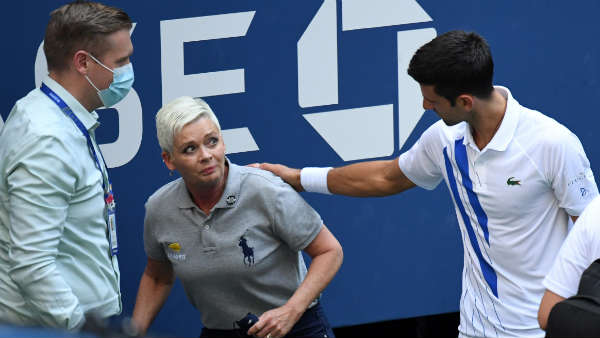 സ്പാനിഷ് താരം പാബ്ലോ കരേനോ ബുസ്റ്റയ്ക്കെതിരായ ജോകോവിച്ചിന്റെ മല്സരത്തിനിടെയായിരുന്നു കോര്ട്ടില് നാടകീയ രംഗങ്ങള്. ആദ്യ സെറ്റില് 5-6നു പിന്നിട്ടുനില്ക്കെ ജോകോവിച്ച് അബദ്ധത്തില് അടിച്ച പന്ത് വനിതാ ലൈന് ജഡ്ജിന്റെ കഴുത്തിലാണ് കൊണ്ട്. തുടര്ന്ന് ശ്വാസതടസം അനുഭവപ്പെട്ട് ഇവര് വീഴുകയും ചെയ്തു. ജോകോവിച്ച് ഉടന് തന്നെ ഇവരുടെ അടുത്തേക്ക് വരികയും എന്താണ് സംഭവിച്ചതെന്നു തിരക്കുകയും മാപ്പ് ചോദിക്കുകയും ചെയ്തു. അല്പ്പം കഴിഞ്ഞ് പരിക്കേറ്റ വനിതാ ലൈന് ജഡ്ജ് കോര്ട്ടില് നിന്നും പുറത്തേക്കു പോയി. തുടര്ന്ന് മാച്ച് റഫറിയും ജോകോവിച്ചും തമ്മില് കുറച്ചു സമയം ചര്ച്ച നടത്തുകയും ഒടുവില് അദ്ദേഹത്തെ അയോഗ്യനാക്കാന് തീരുമാനിക്കുകയുമായിരുന്നു. സ്പാനിഷ് താരം ബുസ്റ്റയെ മല്സരത്തിലെ വിജയിയായി പ്രഖ്യാപിക്കുകയും ചെയ്തു.